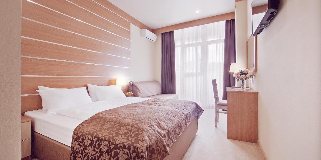 At Alean Family Resort & SPA Biarritz 4* Ultra All Inclusive, we offer a range of spacious and well-appointed rooms to cater to the diverse needs of our guests. Our Standard Double Rooms provide a cozy retreat with a comfortable Queen Bed, while our Standard Family Rooms offer ample space for the whole family with either a Double Bed or two Single Beds. For those seeking a touch of luxury, our Superior Double or Twin Rooms feature either two Single Beds or one Double Bed, ensuring a peaceful night's sleep.