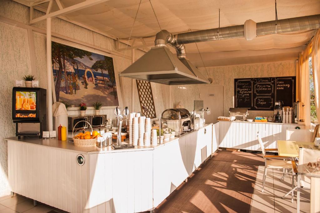 Alean Family Resort & SPA Biarritz 4* Ultra All Inclusive is surrounded by a wide array of restaurants that cater to every palate. Just a short stroll from the hotel, you'll find Blagodarnyi Gelendzhik, a charming eatery serving up traditional Russian dishes with a modern twist. For those craving authentic Armenian cuisine, Erivan is a must-visit, offering a delightful menu of kebabs, dolmas, and baklava. If you're in the mood for a lively evening of karaoke and delicious food, head over to Cafe-Karaoke Hardcore, where you can sing your heart out while enjoying mouthwatering dishes. For a taste of the sea, Tobiko is the place to be, serving up fresh seafood delicacies in a cozy and inviting atmosphere. Whether you're in the mood for local flavors or international fare, Alean Family Resort & SPA Biarritz 4* Ultra All Inclusive's surrounding restaurants are sure to satisfy your cravings.