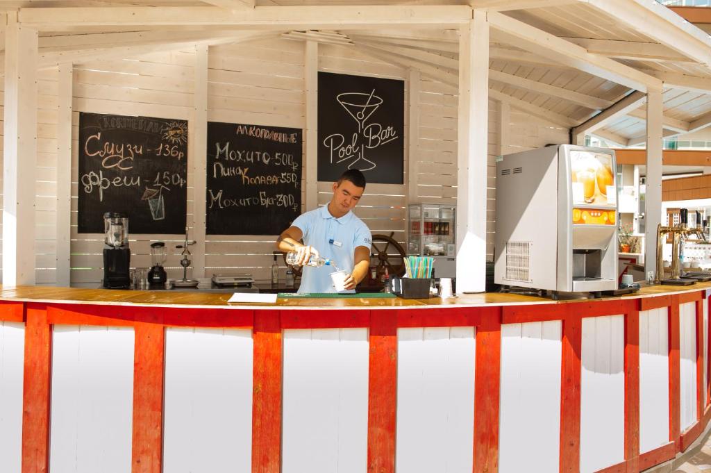 The resort boasts a sophisticated restaurant that offers a diverse menu of international and Russian cuisine. From freshly caught seafood to succulent grilled meats, every dish is prepared with the finest ingredients and served with impeccable presentation. The talented chefs at the restaurant take pride in creating gastronomic masterpieces that cater to every palate.
